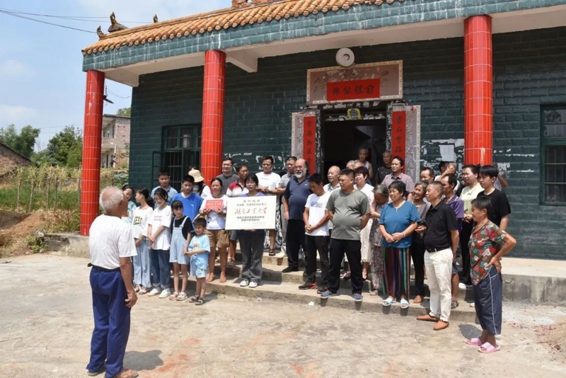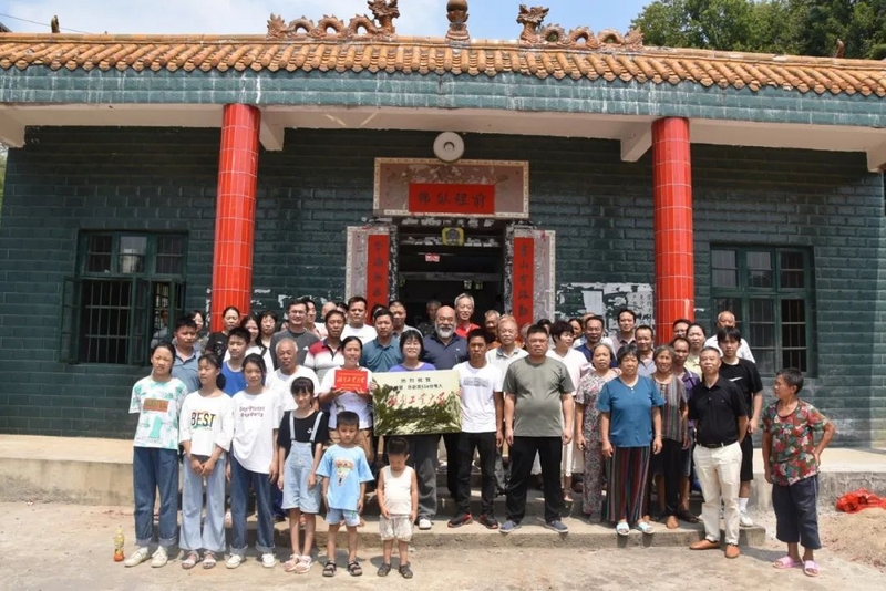 祠堂前坪摆列的两行长长的烟花礼炮同时鸣放,众亲友和乡亲们顶着炎炎烈日列队欢迎,小小湾村一派热闹景象。