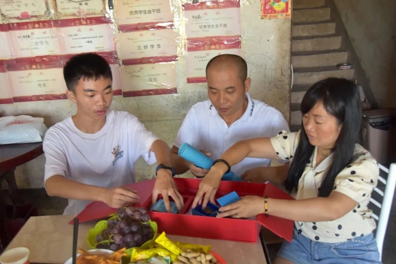 当黄振鑫把中国科学技术大学录取通知书拿回家时,全家人围在一起打开精致的通知书盒,久久舍不得关上。