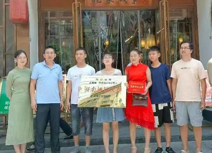 8月17日,高三年级主任钟琼佳、任课老师和同学们,带着恭贺铜匾和华为平板电脑来到城区酒店,祝贺蒋晶晶历史类573分被湖南师范大学录取。