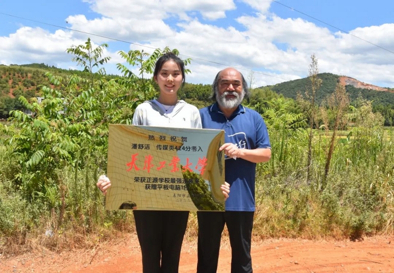 潘舒洁的姨父、正源高中地理老师王金成合影留念时感言: