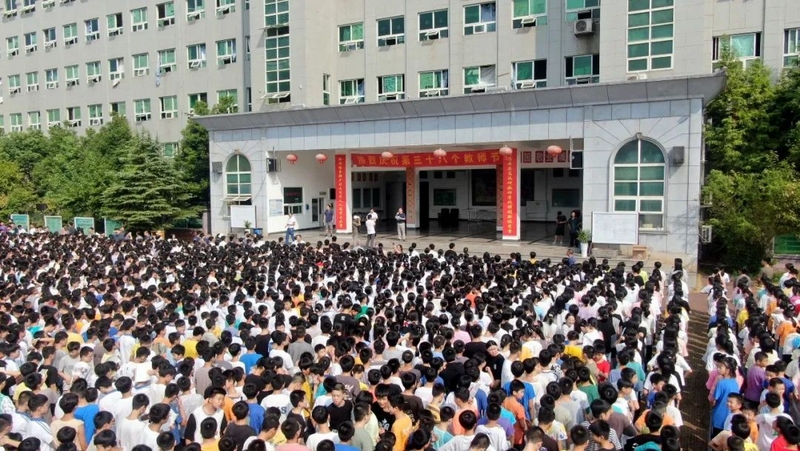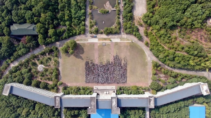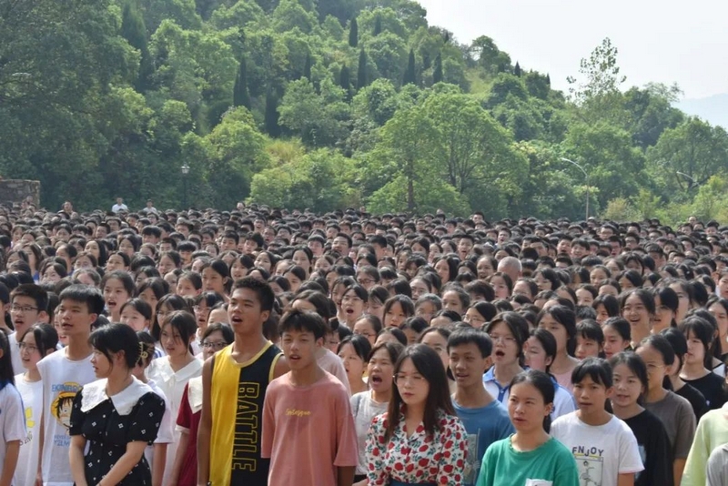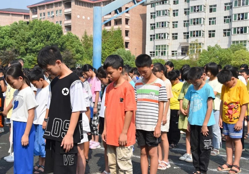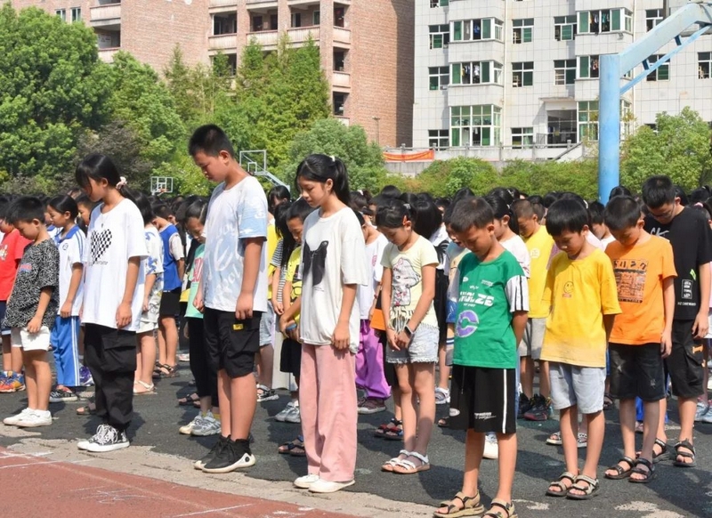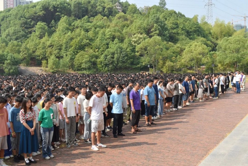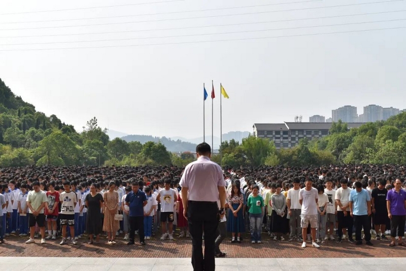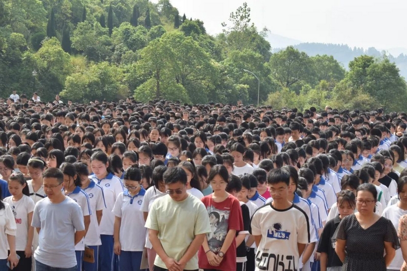 9点48分,警报长鸣。15000师生庄严肃立,向抗战死难同胞默哀三分钟。