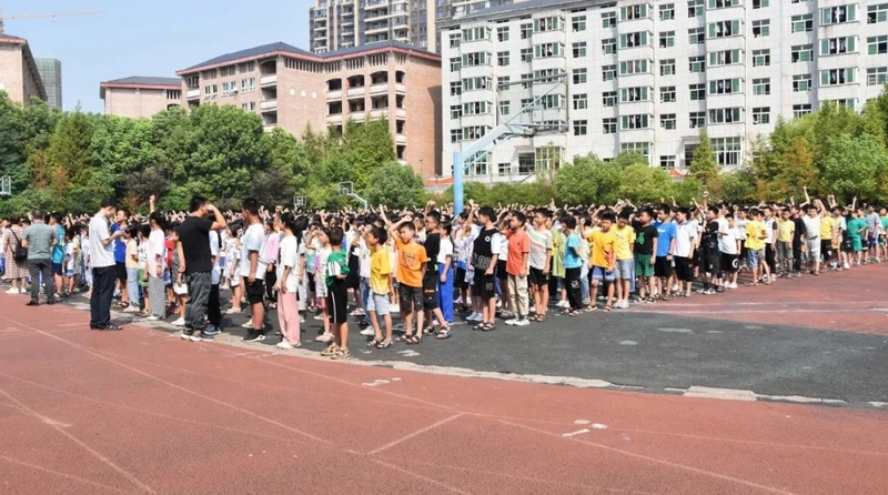 校园上空响起同学们山鸣海啸般的呼号:“勿忘国耻!振兴中华!勿忘国耻!振兴中华!勿忘国耻!振兴中华!”