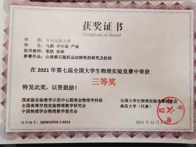 李科璇马上大三了,近期正在准备保研。在中央民族大学大一大二两年时间里,他已通过各种学生会活动、学术竞赛拿了很多奖项和荣誉。其中举足轻重的是国家级实验教学示范中心联席会物理学科组、全国高等学校实验物理教学研究会、中国物理学会物理教学委员会联合举办的2021年第七届全国大学生物理实验竞赛三等奖,以及在北京市科学技术委员会和中关村科技园区管理委员会联合主办的科学实验展演大赛中获一等奖之后又参加了全国大赛,正在等国赛结果出炉。再拿一个省级二等奖或国家级三等奖,李科璇就将达成中央民族大学的保研条件,顺利保研。