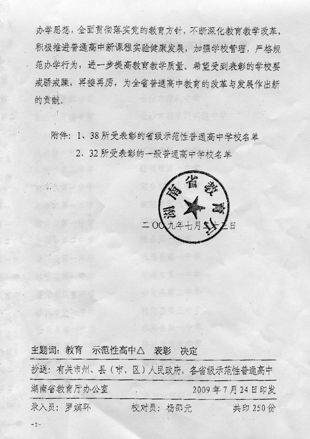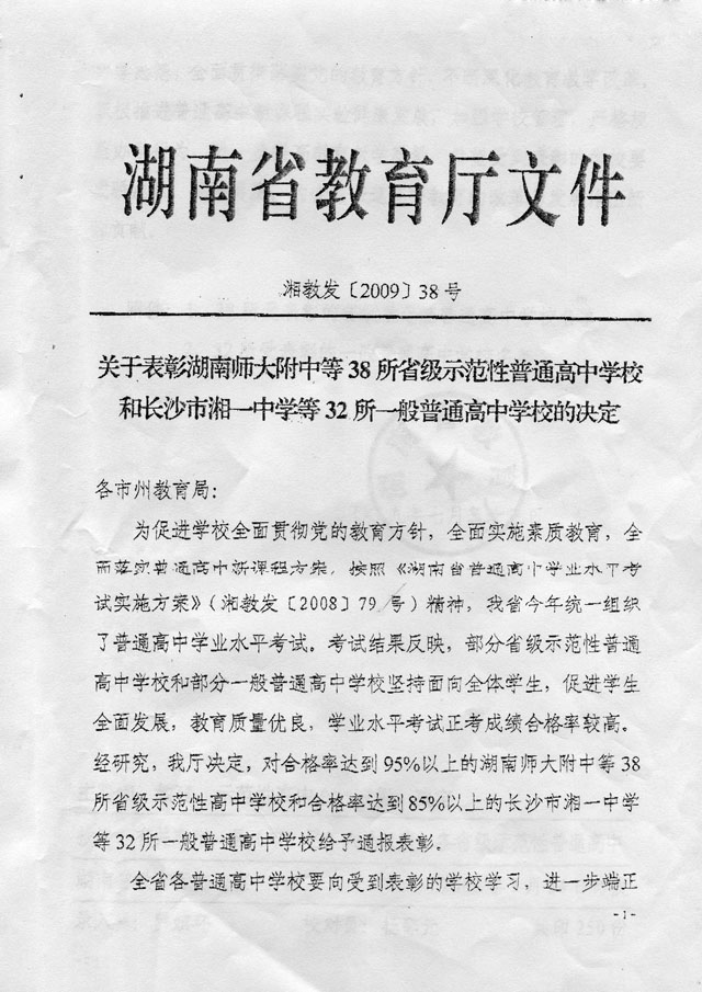 日前,省教育厅湘教发[2009]38号文件对2009年全省普通高中学业水平考试情况进行了通报。衡阳市有6所学校榜上有名,正源学校以97.2 %的合格率受到省教育厅通报表彰,成为耒阳市唯一上榜的高中学校。