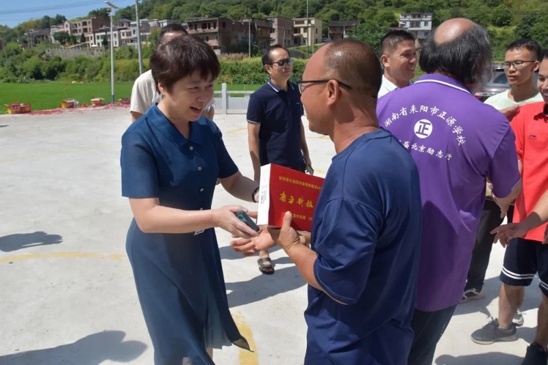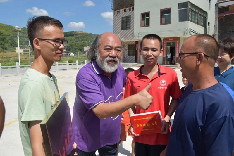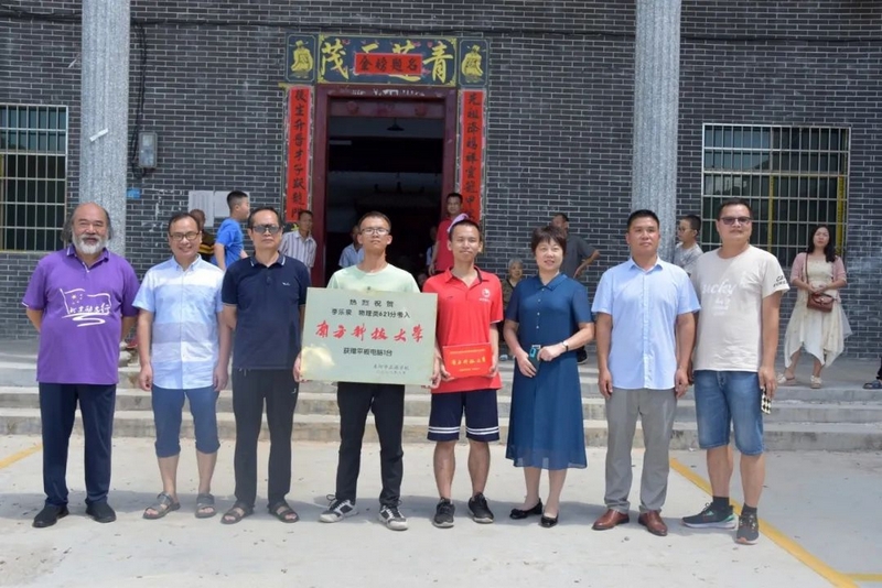 8月14日,罗校长率贺喜团队到小水镇源头村庆贺李乐泉荣升南方科技大学。在祠堂前的大坪里,李乐泉父亲李桂元看到罗校长率老师前来贺喜,迎面而上紧紧握着罗校长的手,恭敬而热情。