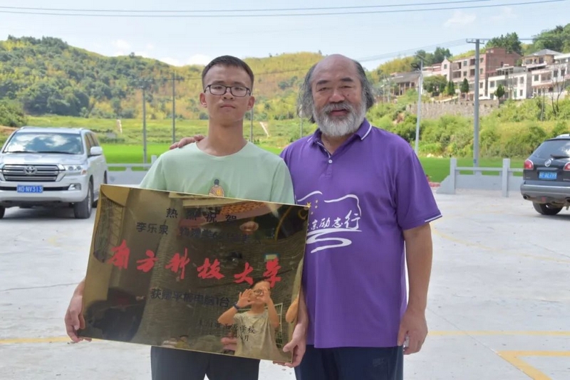 相隔四年,两兄弟先后在同一个班主任的手上走进考场,哥哥李艺鹏2018年考取北京邮电大学,弟弟李乐泉2022年考取南方科技大学。两兄弟和班主任罗经飞老师的情缘就像歌词写的那样“一定是特别的缘分,才可以一路走来变成了一家人”。