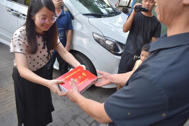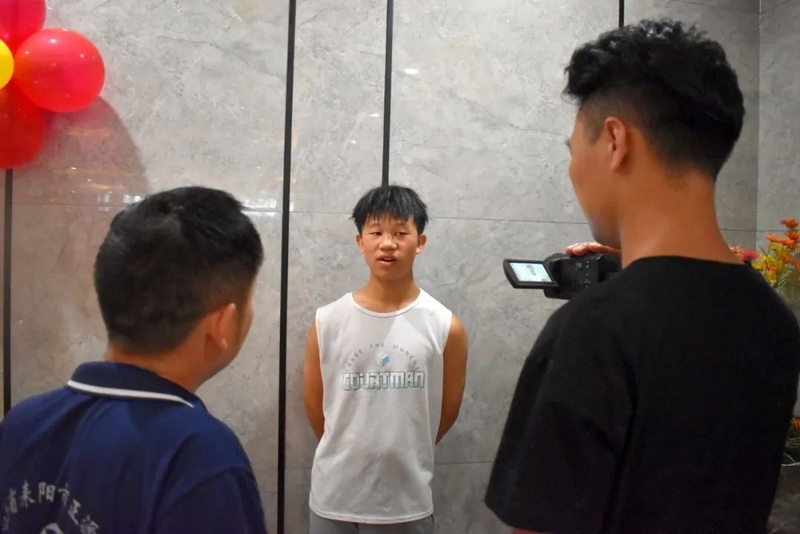 十几个小伙子闻令而动,三两下蹦上酒店台阶列队完毕,将今天恭贺的主角和他的父母、老师们簇拥在镜头中央。
