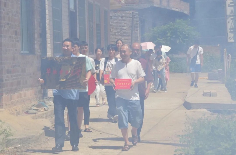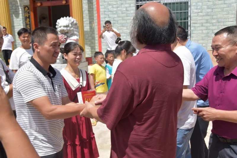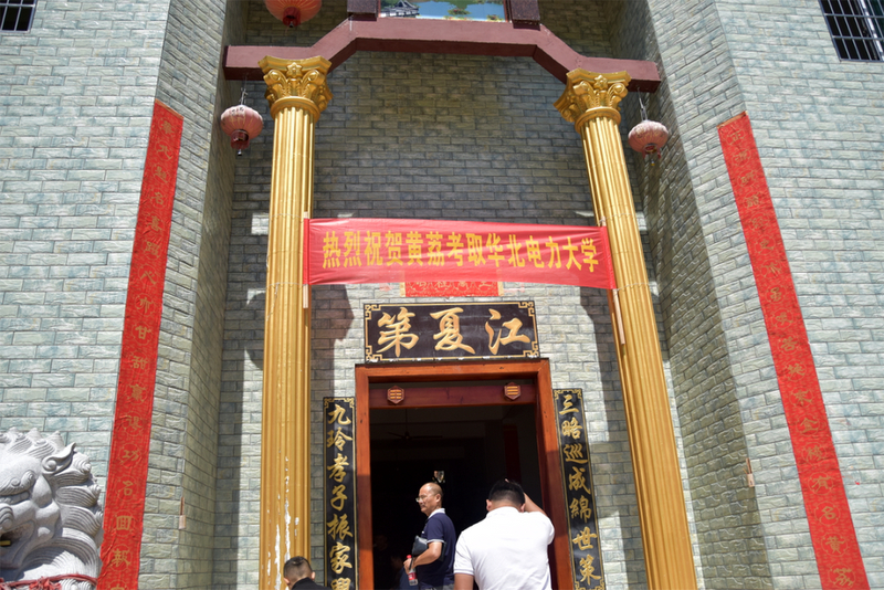 罗校长一如既往主持升学庆典仪式,在祠堂门口,前来贺喜的老师和同学几十人分成几排,站在台阶上见证着喜悦时刻。