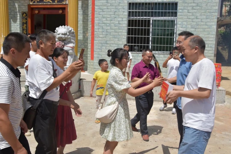 谢师宴当天,罗校长率领的贺喜团队一到寿洲村5组的祠堂前,宁静的乡村开始闹腾起来,烟花爆竹声冲击着湾村的各个山丘。罗校长见面就说:你看我们太平的人好厉害啊!