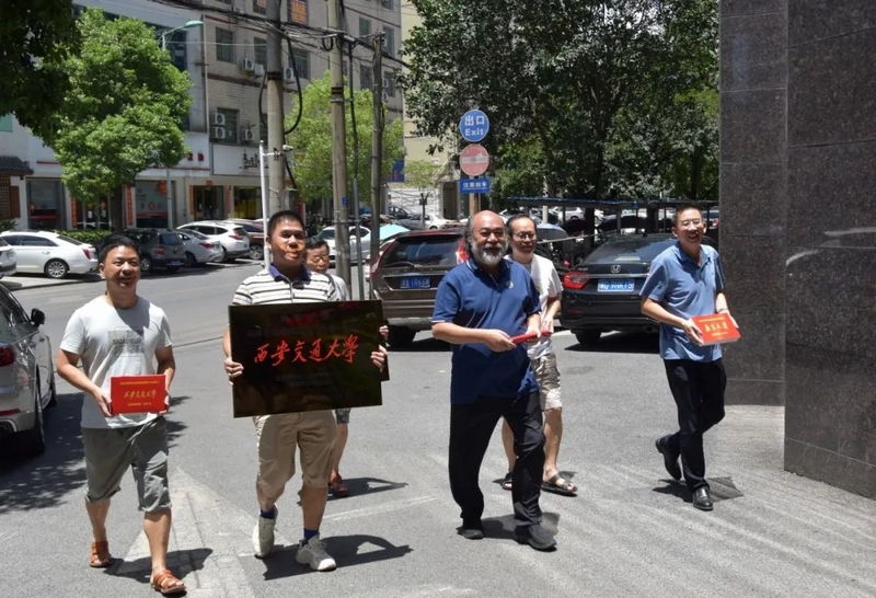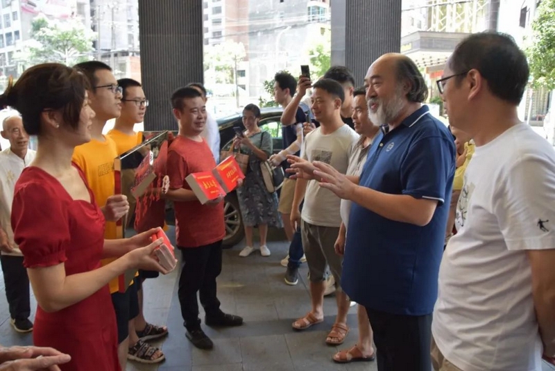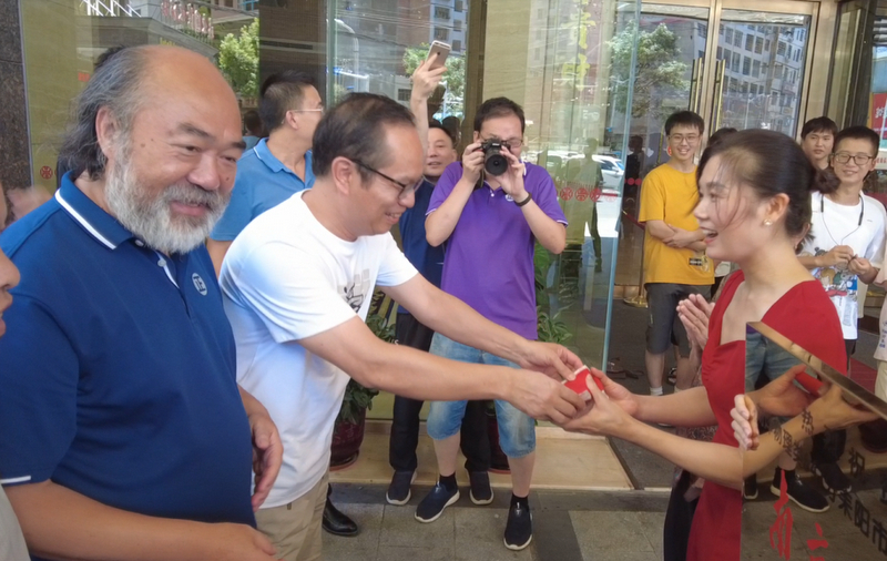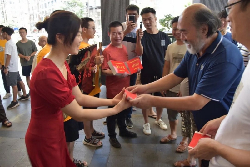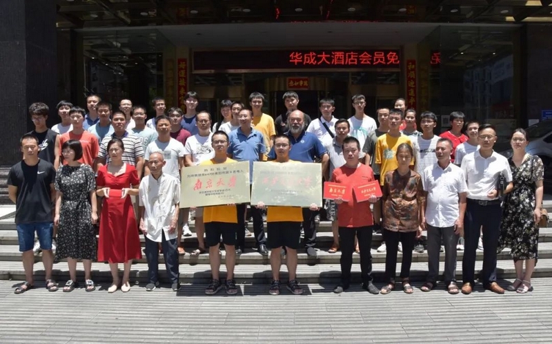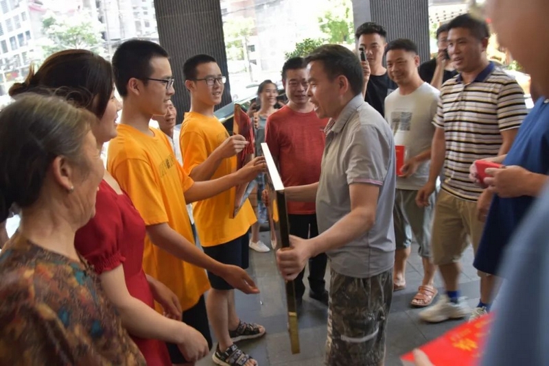 中午十二点,罗校长和老师们捧着两块铜匾、两台华为平板电脑、两沓各一万元的文军奖学金过来贺喜。车上下来的高三年级主任钟琼佳、班主任董志成和罗经飞、化学老师李康活、语文老师李明和罗校长一起左拎右捧,带着喜悦,兴致勃勃走向早已等待着的双胞胎一家及同学们。