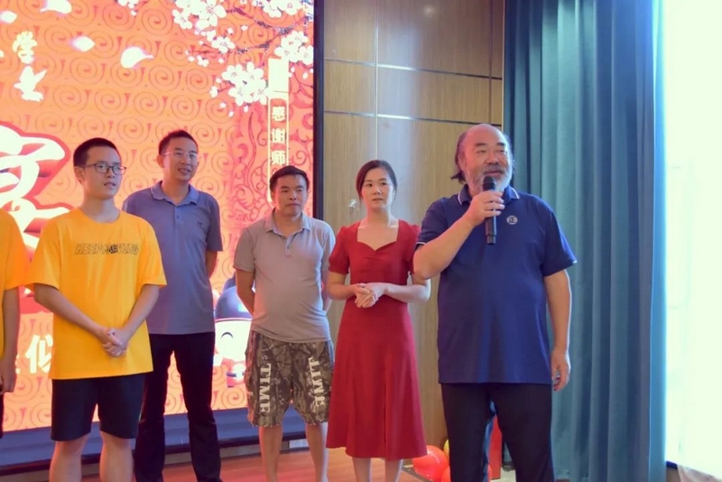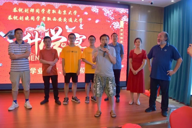 升学宴上,刘烨刘晓高一班主任董志成老师、高三班主任罗经飞老师、年级主任钟琼佳和罗校长兴高采烈地对兄弟俩和他们的父母进行祝贺。