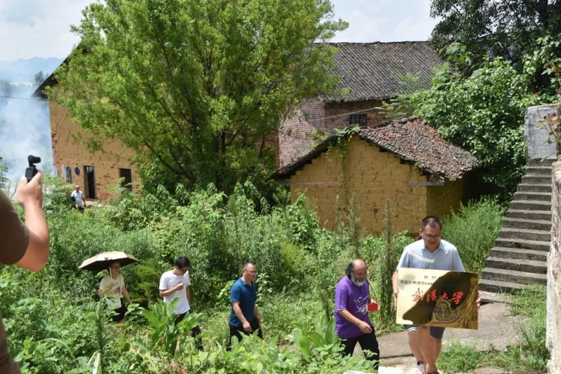 车队来到纸槽村,在邓起仪父亲邓泽瑛的指引下停好车,走进村口,右拐,沿着狭长的村道前行一百多米,左拐绕过一片老屋,又右拐,弯弯曲曲穿过一片菜地,抬头是一条石块铺成的坡道,高高低低爬完石梯,上到水泥禾坪,就是邓起仪的家。