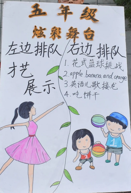 本着丰富孩子的课余生活,让更多的孩子有展现自我的机会的初衷,在学部的号召下,年级牵头,五年级英语组策划了本次炫彩舞台活动。