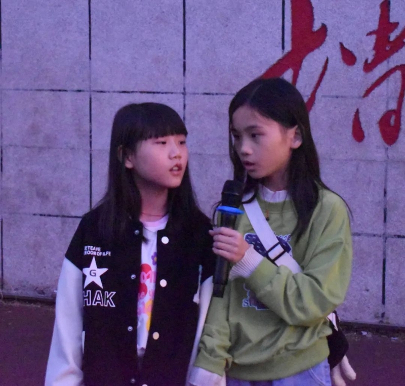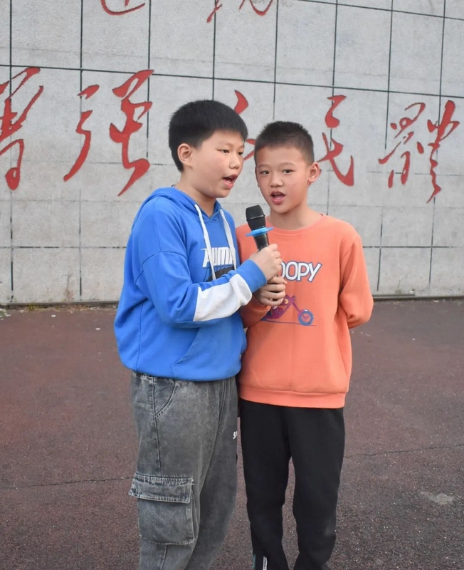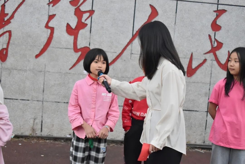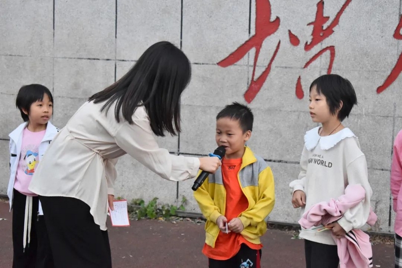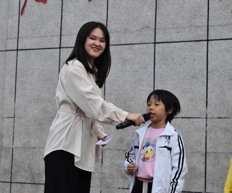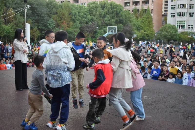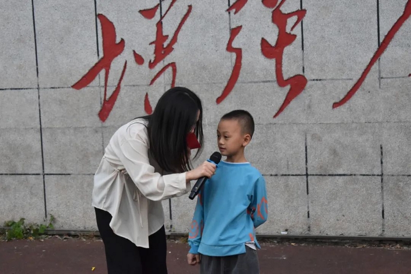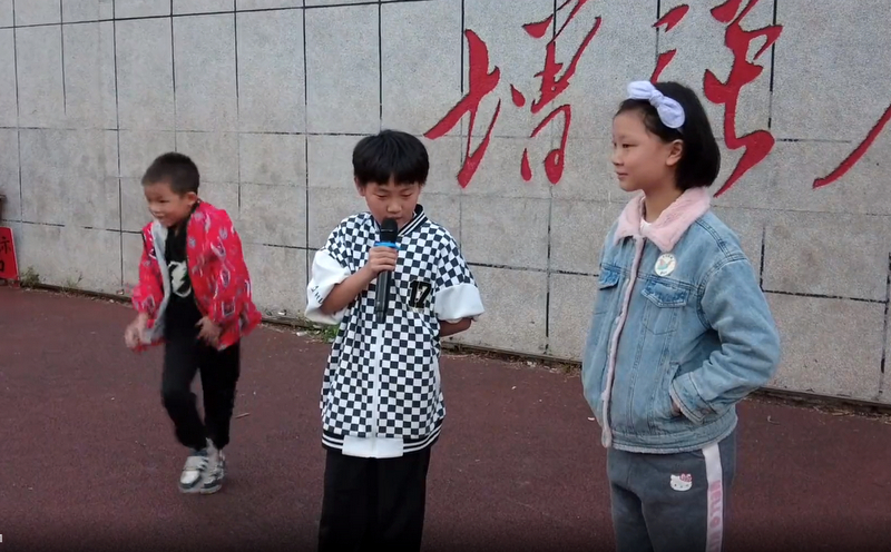 趁着歌声未了,钟老师随即进行了英语歌曲大接龙。游戏区的孩子们陆续排队上台,展示了平时学的英语儿歌。稚嫩的童声,一首接一首,在操场上空飘扬。来自二年级的的蒋皓,随着音乐情不自禁的跳起了舞蹈。那动感十足、放飞自我的表现,让观众群里传来阵阵爽朗的笑声。