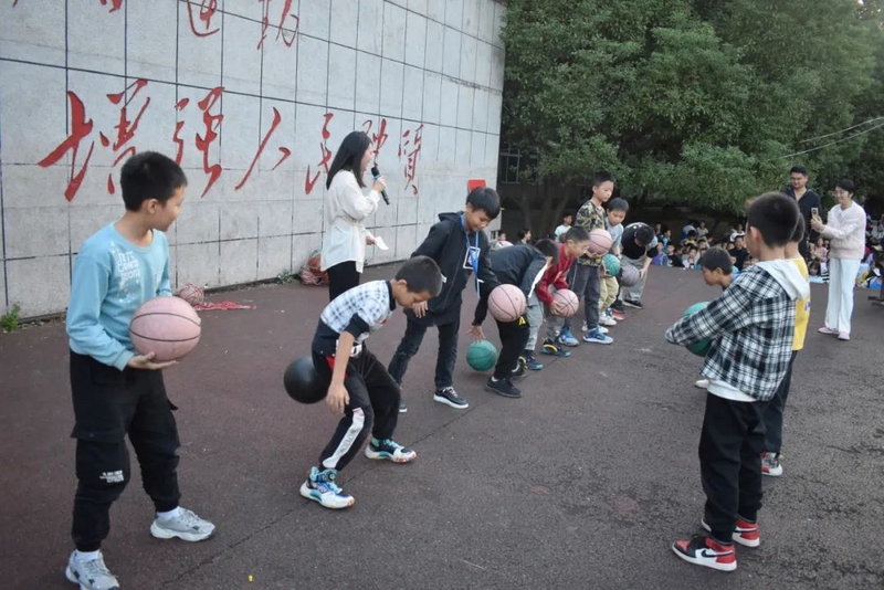紧接着,钟老师邀请了几个爱好篮球的同学上台展示花式篮球的动作。 只见他们动作娴熟地拍着篮球,那动感十足的节奏,让台上的观众自然地拍起手来附和。游戏区的观众欲欲跃试,上来挑战一番。挑战的孩子们的层次各异,有的球到手上就溜了,让观众们忍俊不禁。有的表现精彩,赢得奖券。