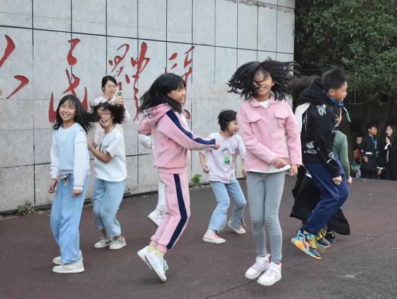动感十足的《毽子操》为本次活动点燃热情。孩子们在音乐的伴奏下有时翘着脚踢,有时交换脚踢,就好像真的有一只只毽子在腿间飞舞。