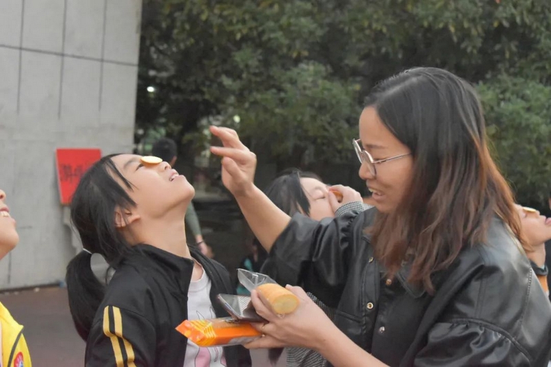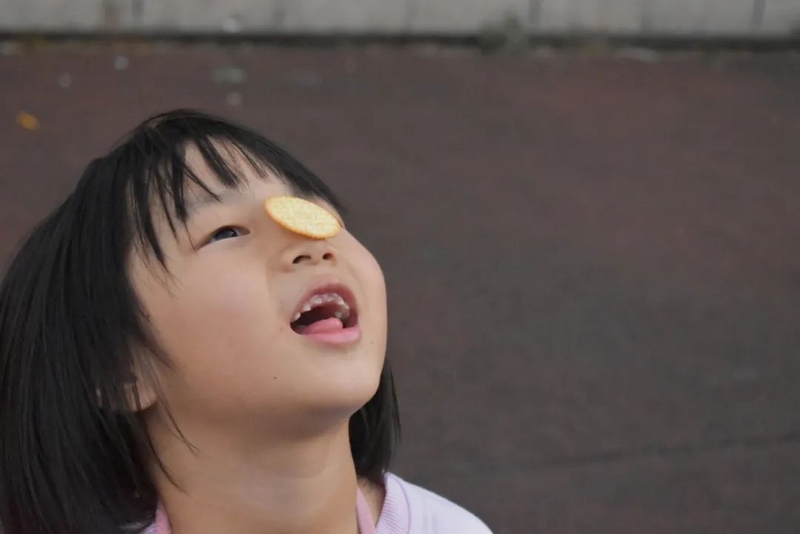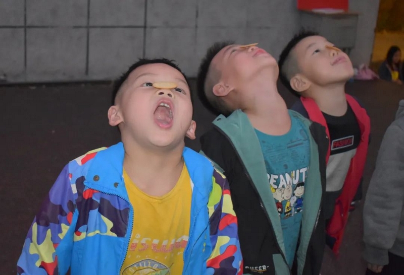 最受观众喜爱的莫过于吃饼干的游戏了。10多个孩子们在台上并排站着,在不借助手的情况下,一个个“挤眉弄眼”试图吃到放在鼻梁上的饼干。孩子们的各种表情把观众们逗得捧腹大笑,自己也体验了快乐。