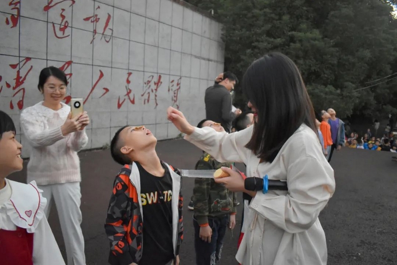 才艺展示区的孩子早已经排起了长龙。361班伍星毅和钟嘉麟带来了《小城夏天》,358班曾海涛等耍起棍子武术,350班郭芊等同学献上了舞蹈《小池》。孩子们的表现丝毫不怯场,赢得了观众阵阵掌声。