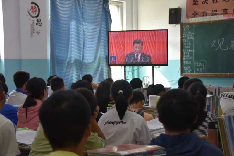 “我们正源学校全体师生坚定不移听党话、跟党走、走正道,全校总动员,人人上大学,努力培养怀抱梦想又脚踏实地,敢想敢为又善作善为,立志做有理想、敢担当、能吃苦、肯奋斗的新时代好青年。”