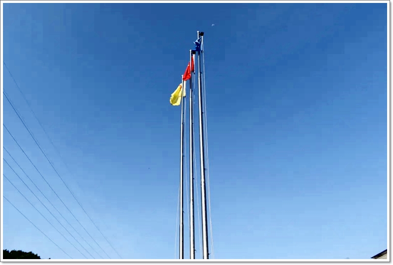 7点40分,国歌奏响,全场肃立。五星红旗冉冉升起,全体师生庄严肃穆面向国旗行注目礼。