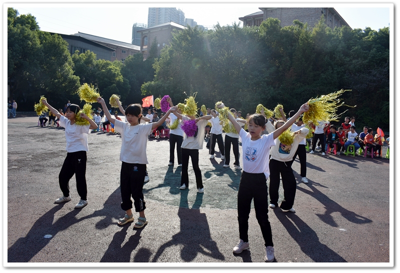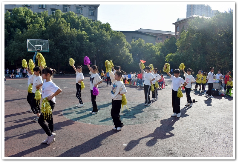 在欢快的乐曲声中,六年级阳光体育篮球赛拉开了帷幕。首先开场的是由六年级十几位美少女组成的啦啦操表演。队员们身着整齐的服装闪亮登场,伴随着动感的音乐响起,队员们随着节拍,踏着动感的乐点,弹跳着轻盈的舞步,身姿律动,舞动着彩带,动作优美整齐,如跳跃的焰火使全场观众为之震撼。她们动感活力的舞姿展现了体操与舞蹈的完美结合。同学们精神抖擞,跳出了青春与活力,她们精彩的表演带给人以完美的视听享受,换来了球场上师生们阵阵喝彩声。