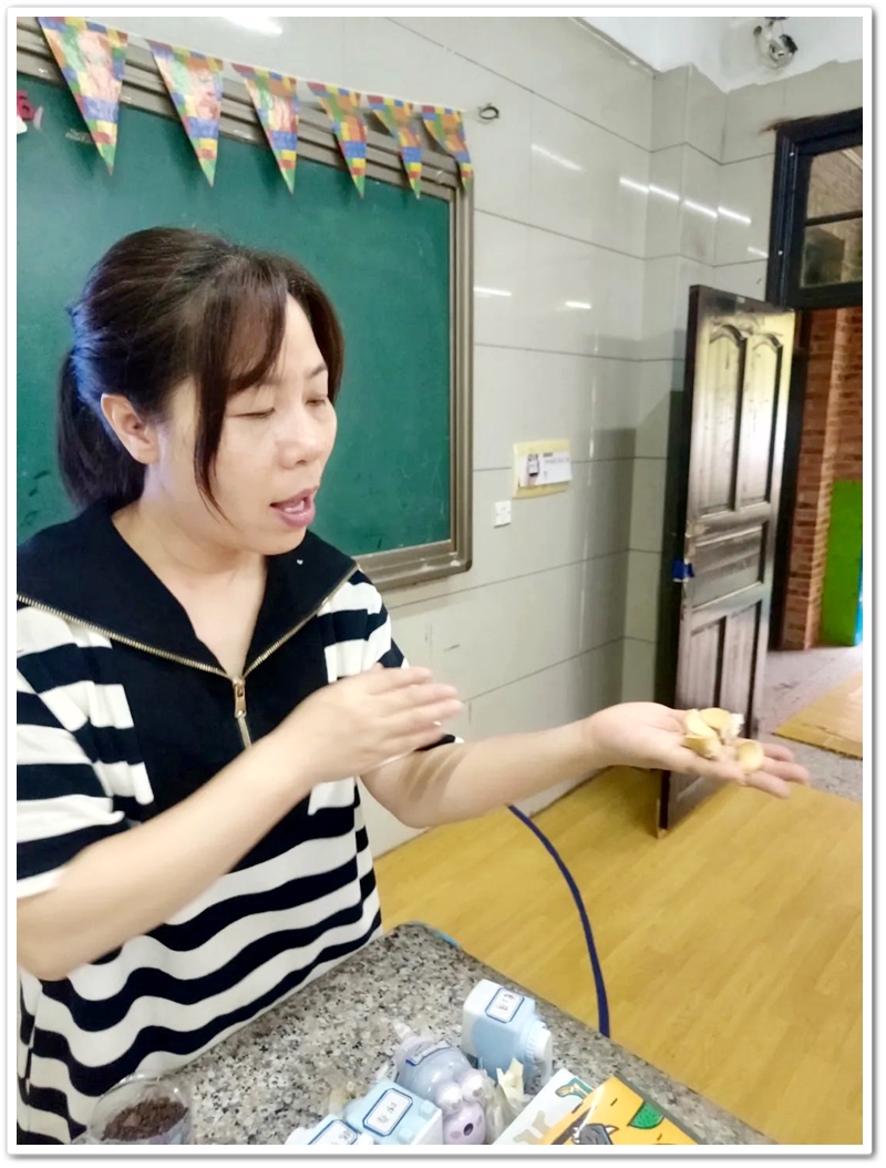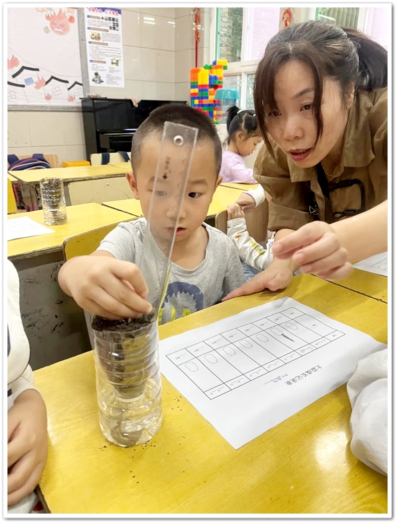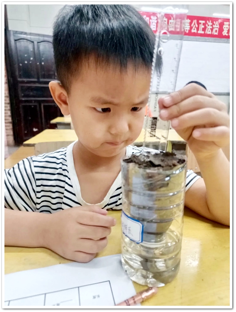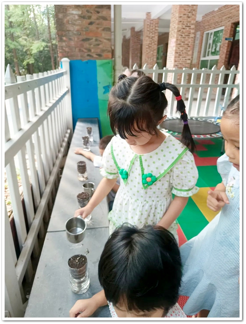 老师告诉大家,种植的时候,要先将蒜头在冷水里泡一泡,这样发芽会更快。当然,种植也是有技巧的,必须蒜尖朝上,蒜根朝下,让蒜子直立在土壤之中。瞧,它们多像一个个士兵,威武挺拔!
