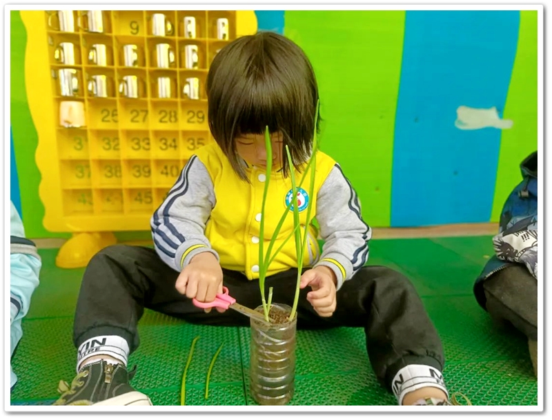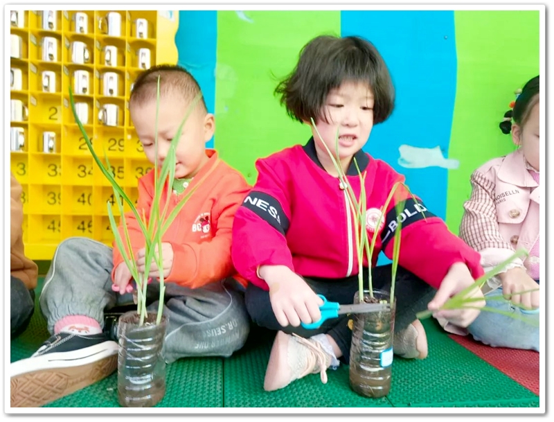 终于到了收获的时候,孩子们亲手剪下了自己种植的大蒜,这种喜悦溢于言表。你瞧,他们剪得多么认真仔细啊,生怕一个不小心就弄坏了大蒜,它就再也不生长了。