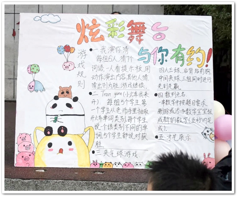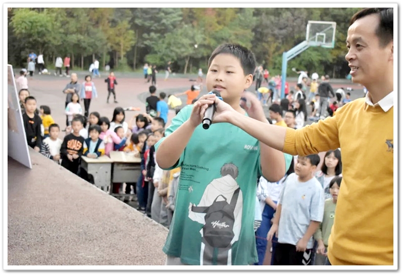 10月18日晚餐后,小学部的操场上已聚集了很多同学,孩子们翘首期盼着属于自己的舞台能早点开启大幕。5:30由正源小学二年级承办的“炫彩舞台,与你有约”活动如约而至。本次活动由二年级教师集体策划,由胡益静老师担纲主持,设计了“我演你猜”、“Train game”、“夹气球”、“数列点名”“才艺展示”五个环节,现场观众自觉排队,自愿上台,可以随心表演。