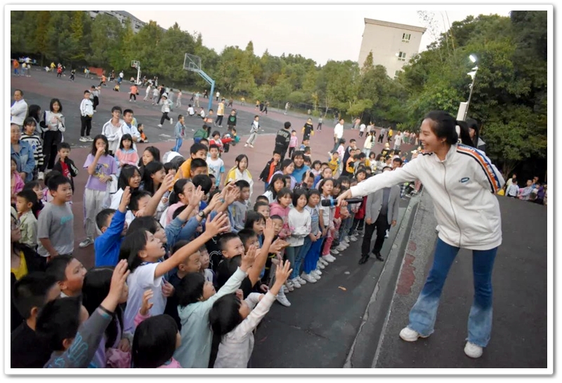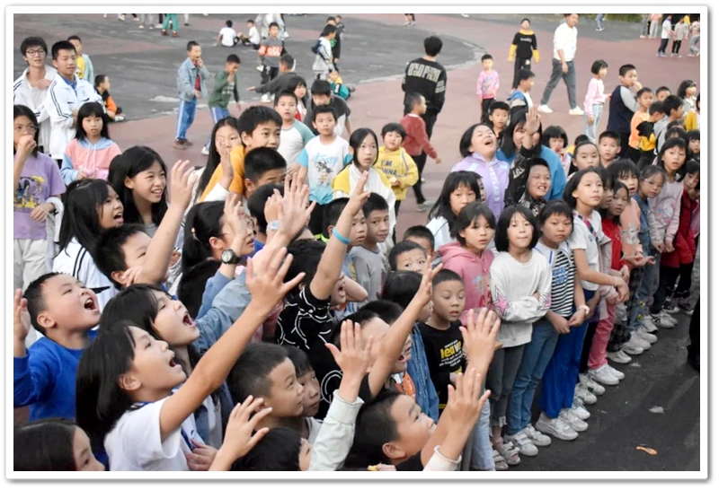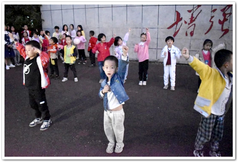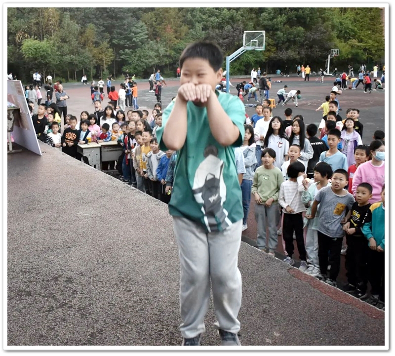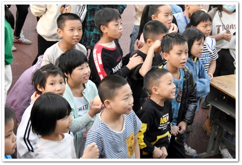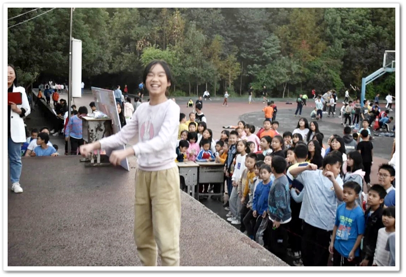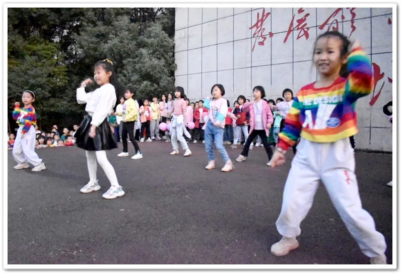加油助威声仍言犹在耳,才艺展示区等候的学生却早已挤断了隔离绳。首先上场的是二年级舞蹈队的小美女们,在周子娟老师的指挥下,迅速排好了队形,他们随着动感的音乐翩翩起舞,给观众们呈现了不一样的《黑桃A》。一年级的弟弟妹妹们也不甘示弱,20来个小可爱自信地站在舞台中央,和着音乐的节拍跳起了动物操。他们用萌萌的表情和天真可爱的动作赢得了观众的阵阵掌声,还引来了二年级的抖音小网红蒋皓也跟着跳了起来,蒋皓还不时自编自演了段动感街舞,他那自我陶醉的搞笑表情和鬼灵精怪的动作,不禁让人捧腹大笑,活脱脱一个灵魂舞者。