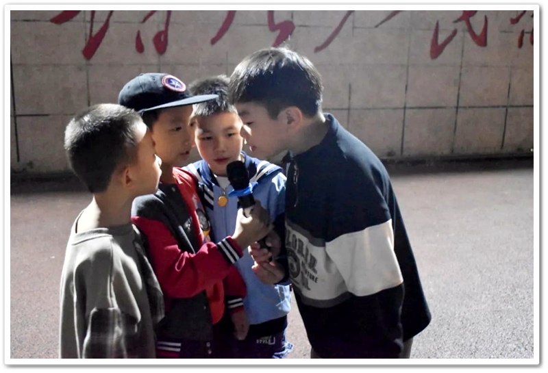 紧随其后的,是激动人心的游戏环节。首先进行的游戏是“传传乐”。一旁候场玩游戏的小观众早已按耐不住。由于一年级小朋友的特殊性,主持人李老师宣讲完游戏规则之后,一旁的封老师和王老师进行了一次示范,确保小参赛者能够理解游戏规则。
