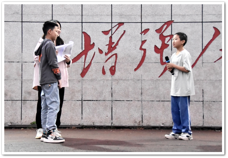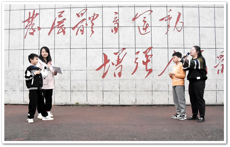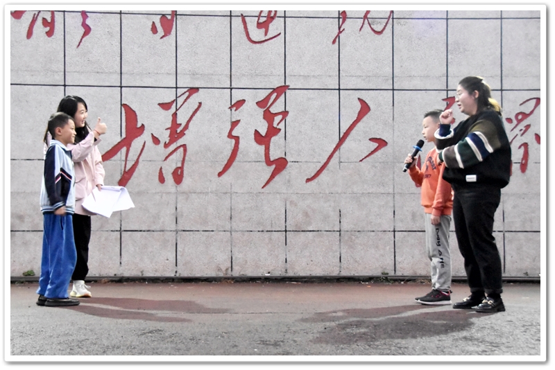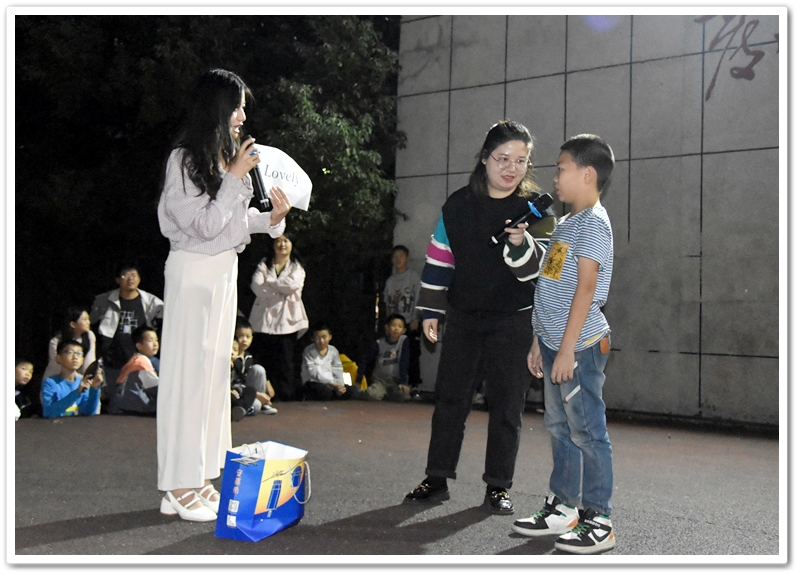 紧接着进入了语文活动环节《你来比划我来猜》,两两为一组的同学,依次上台。一人用语言或肢体动作来描述,另一人根据提示猜测词语。这个游戏考验默契、反应速度和表达能力。台上的小朋友有的反应迅速,顺利答题;有的认真思考着;有的皱着眉头;也有的急切地望向观众求助。让玩的人和看得人都十分享受这个欢乐的过程。