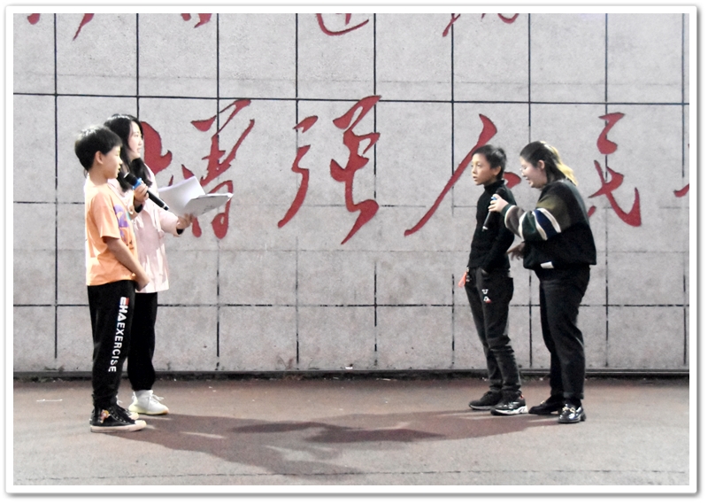 在第二个相声节目《赔礼道歉》中,肖峥和谭扬两位同学,小小年纪说起相声来惟妙惟肖,腔调的拿捏像是祖师爷附体一样,惹得同学们哈哈大笑。节目既有趣味又有教育意义,教育我们从小养成讲文明懂礼貌的好习惯。