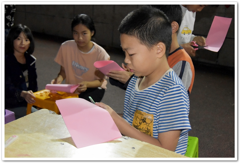 最让孩子们受益的当属数学组的活动《纸洞大开》啦!数学刘老师问:“在纸上剪一个洞,洞会比纸大吗?”“不会!”“洞怎么可能比纸大!”台下的同学纷纷摆手表示不可能。刘老师神秘一笑:“稍后我们要在纸上剪一个洞,让同学们从洞中间钻过去!”就在同学们议论不休时,老师请上几组同学进行指导,只见他们拿起一张纸,对折,然后慢慢沿着边缘剪,快要剪断的时候,停了下来,再反过来剪......就这样反复多次。剪好了,一张纸变成了一条长长的带子。拉开带子就成了一道“门”,排队进“门”的同学络绎不绝。“哇!太神奇啦!”台下爆发出阵阵掌声。