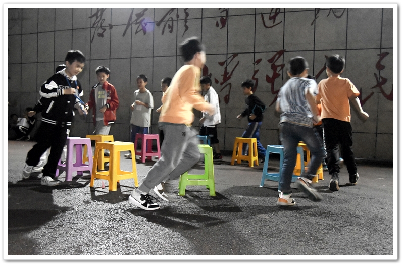 最后一个环节是英语活动“抢椅子”。随着有节奏的鼓点响起。八位同学围绕着七个椅子转起圈儿来。敲击声时而快,时而慢,时而大,时而小。参赛者也一会儿快一会儿慢,既高兴又紧张。有的眼睛直勾勾的看着凳子,有的左顾右盼生怕有不速之客在身边。突然,鼓声停了,机灵的同学一屁股坐了下来。淘汰者也不用灰心,因为和蔼可亲的谷老师已经为他准备好了英语小问答,答对的依然可以获得奖励。