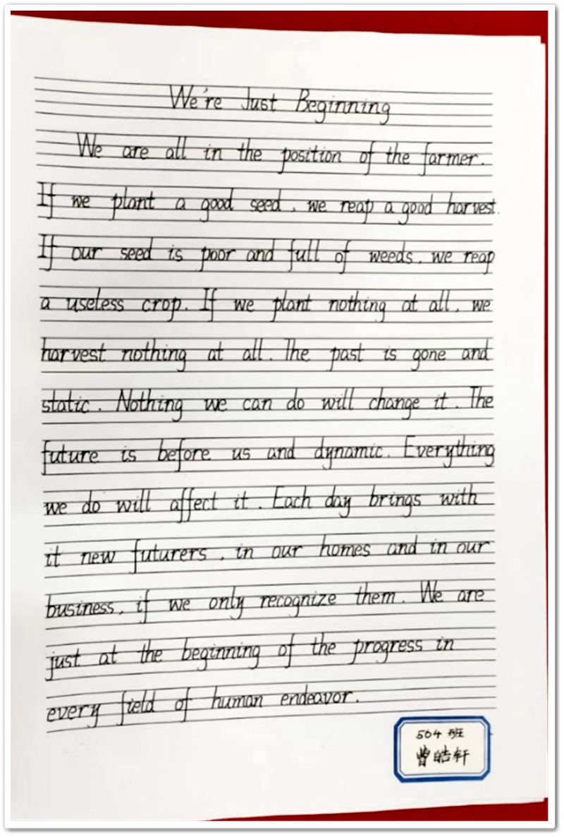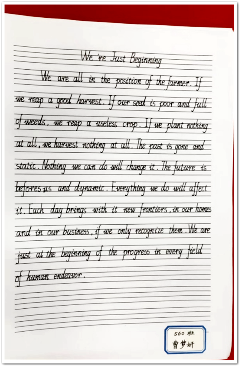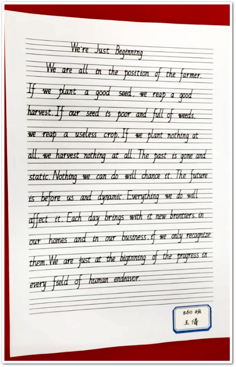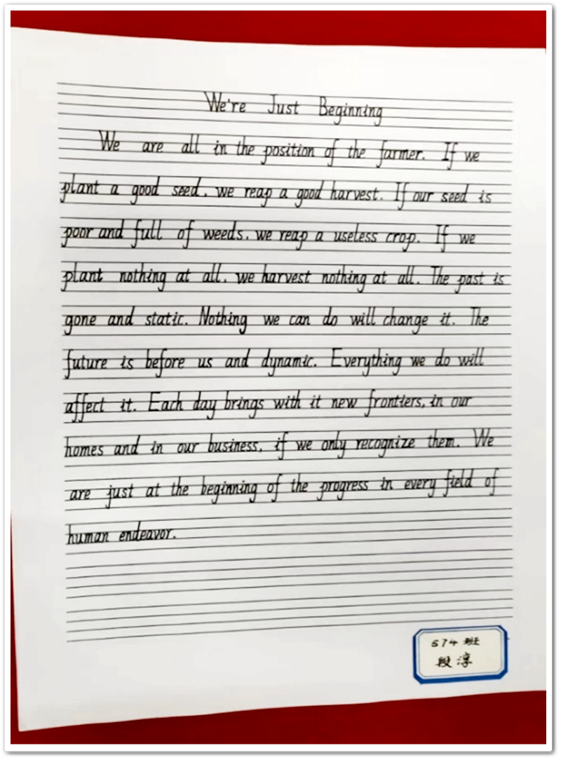 “用笔在心,心正则笔正,笔正乃可法矣”。写好字的意义不仅仅在于美化卷面,更在于书写本身就是一场养心的修行,愿我们所有人在这场修行中行且益坚。