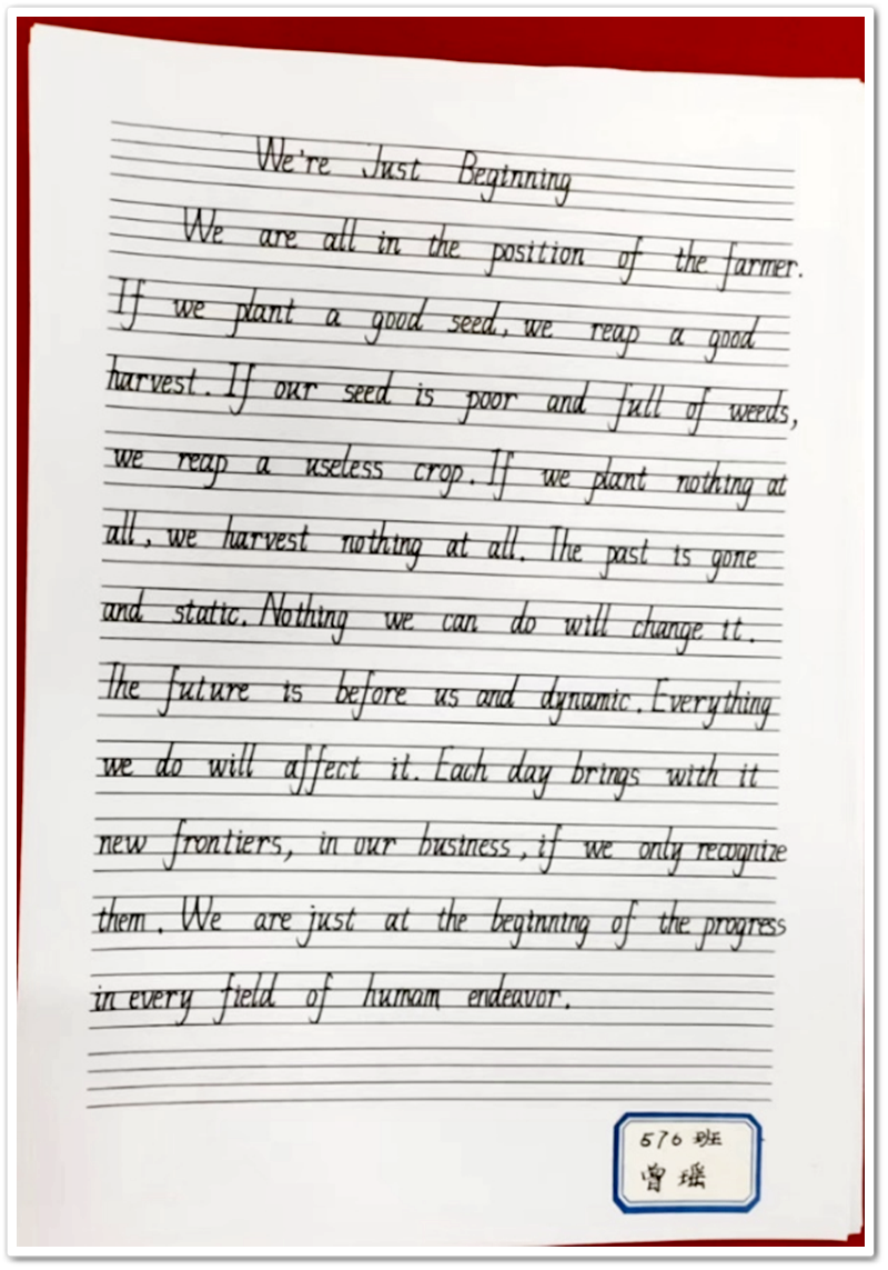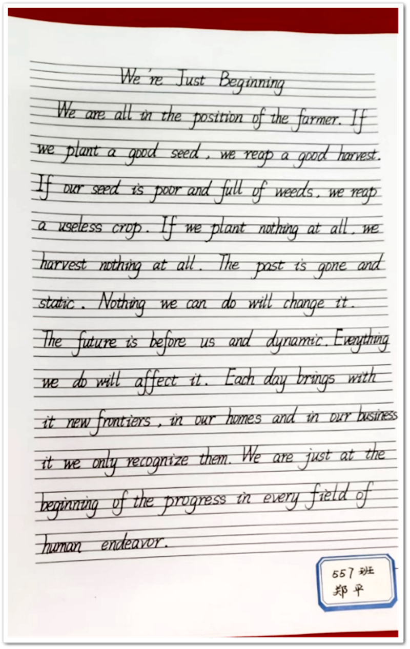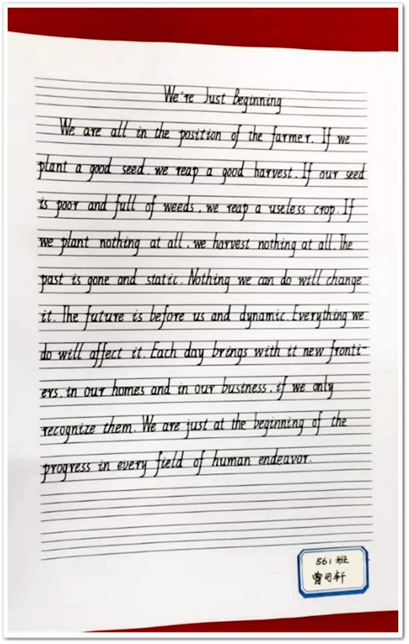 “用笔在心,心正则笔正,笔正乃可法矣”。写好字的意义不仅仅在于美化卷面,更在于书写本身就是一场养心的修行,愿我们所有人在这场修行中行且益坚。