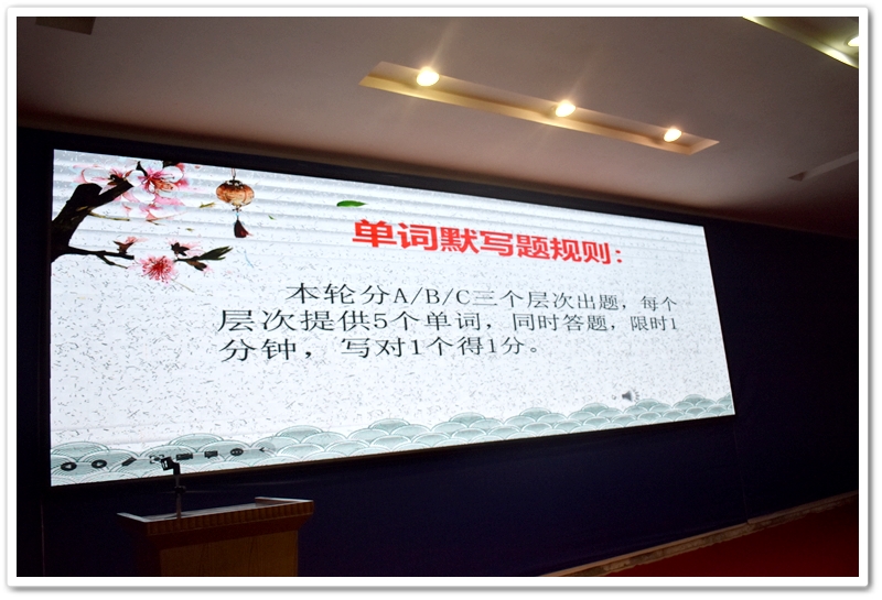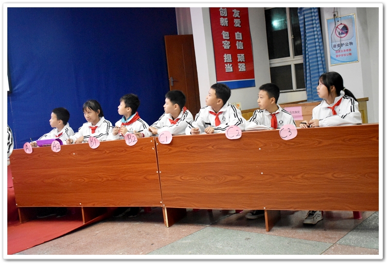 此外,竟技的过程包括选择题、互问互答题和单词默写三个部分,题型涉及情景交际、口语问答、专业名词、专题词汇、课文背诵、口头翻译以及所学的重点句型,内丰富多彩。16个晋级决赛的组,两两轮番上阵,8轮对决下来,最终由来自六年级344班的“火焰号”以202分的成绩夺冠, 341班“奇迹号”、“女王号”分别以181分、178分获得第二名、第三名;344班“梦想号”以161分获得第四名。