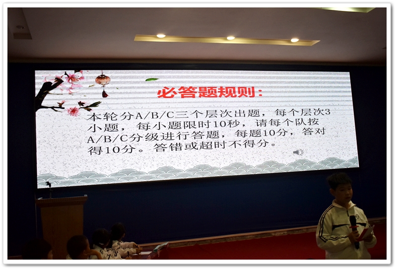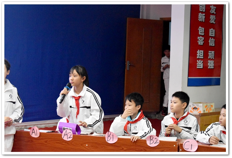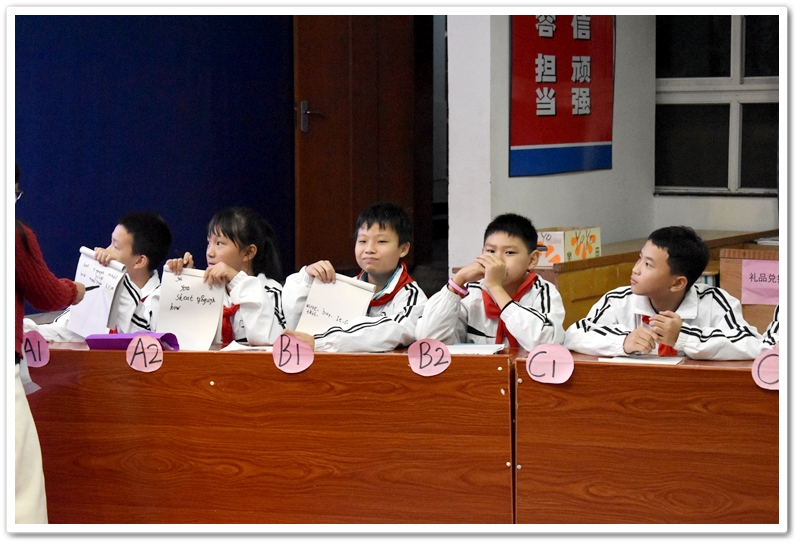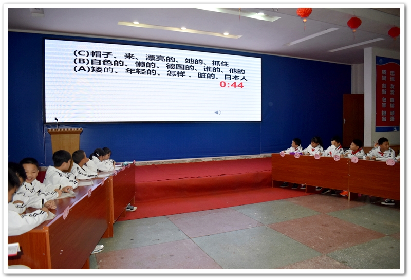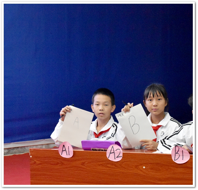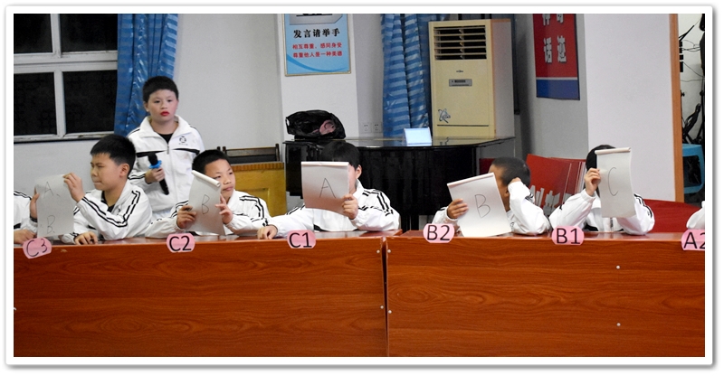 这是正源学校六年级4个寄学班的孩子正在展开的“新概念英语知识竞赛——冠军争夺赛”。此赛的一大亮点是“学生人人参与”,一个都不能少!亮点二是:每个竞争组按考评成绩由高到低分为ABC三个小组,A与A对抗,B与B竞争,C与C相互提问;亮点三:知识题库也由难到易分为ABC三个系数,分别由ABC小组的选手作答。