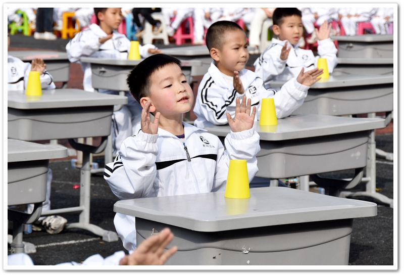 随着中国综合国力的不断提升,中华民族的优秀文化越来越受到世界的瞩目。445班表演桌椅舞《本草纲目》,孩子们跟着轻快的音乐,用身体律动的方式,通过拍手、拍桌子和敲击杯子发出声音,让桌椅舞充满着创意与童趣。