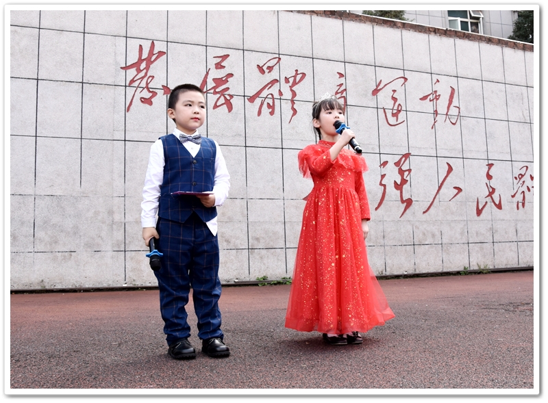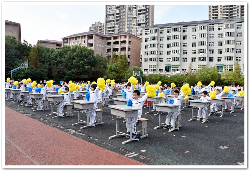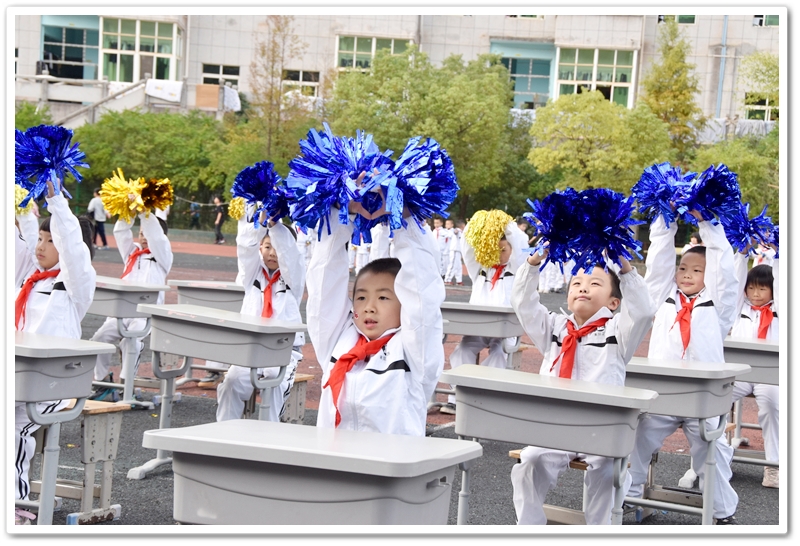 看!操场是我们快乐无限的广场,校园是我们健康成长的乐园,课堂是我们放飞理想的天堂。为了我们的明天,同学们,锻炼身体,好好学习,向前冲吧!441班同学用鲜艳的啦啦球表演了课桌舞《快乐向前冲》,充满着热情与活力。