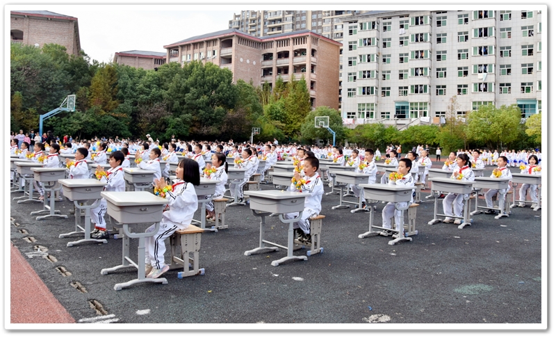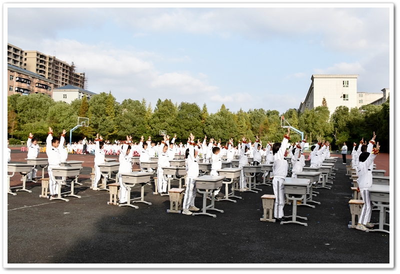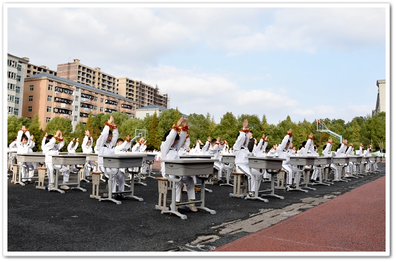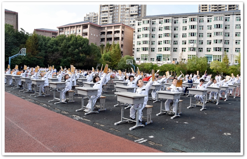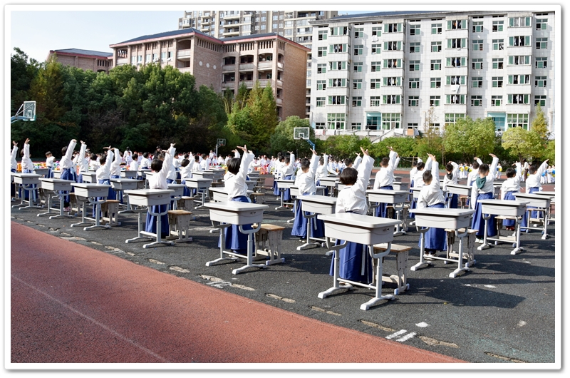 每一首诗似乎都成了一次事件,一段岁月,一段激情。每一首诗似乎都是一面旗帜,一曲狂飙,一道风景。眼底六洲风雨,笔下有雷声。广袤九州大地,文字有豪情。444班同学身穿汉服表演桌椅舞《古诗伴我成长》,用优美的手势将古诗词的魅力展现得淋漓尽致。
