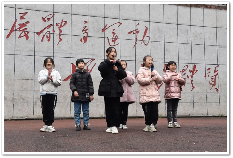 歌声,是嘹亮的,不同的歌有着不一样的韵味;歌声,是神奇的,不同的人唱出不一样的心声。歌声悠扬、淳朴,像谆谆的教诲,又像娓娓的谈话,一直唱到孩子们的心里,又从心里唱出来,弥漫整个运动场。声浪碰到群山,群山发出回响;声浪越过耒河,河水演出伴奏;几翻回荡往复,一直辐散到遥远的地方。