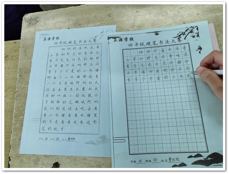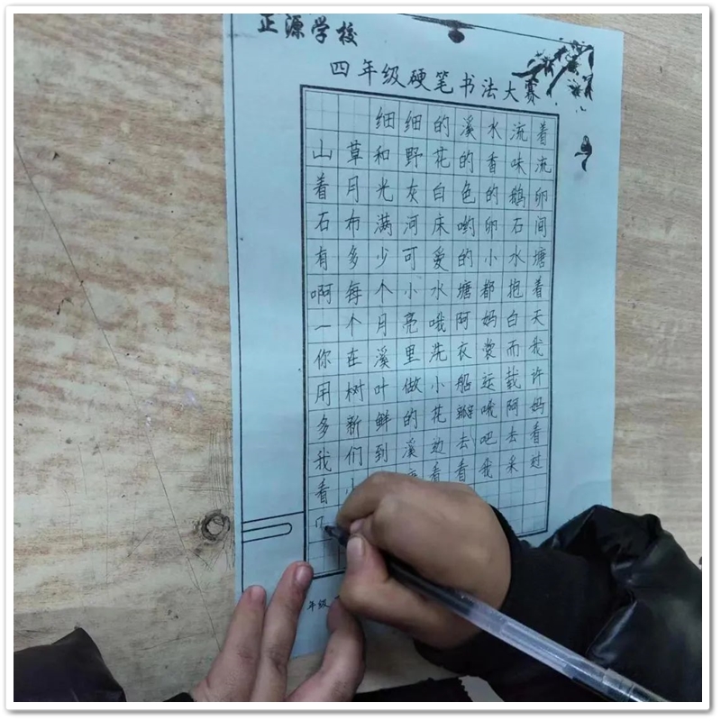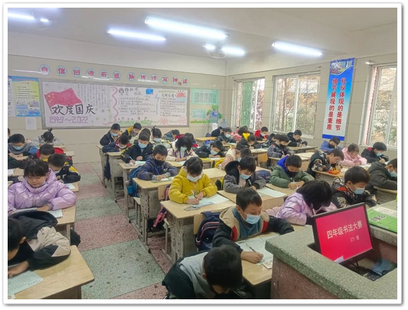 书法是素质教育的重要内容,书法蕴含着丰富的精神内涵、深厚的文化底蕴、全面的技能因素。书法可以提高学生的综合素质与能力、培养学生优秀的人文精神与良好的道德品质。本学期四年级书法常规课一大周三节,有两节硬笔课。为检验各班硬笔书法练习效果,培养正确的书写习惯,引导学生把汉字写正确、端正、整洁、美观,让学生们练就一手好字,受益终生,我校小学部四年级全体学生于12月17日下午举行硬笔书法大赛。这次硬笔书法比赛活动,既丰富了学生的文化生活,培养了学生的书法兴趣和爱好,同时也提高了大家的审美意识,对学生更好的发挥特长起到了积极促进作用。
