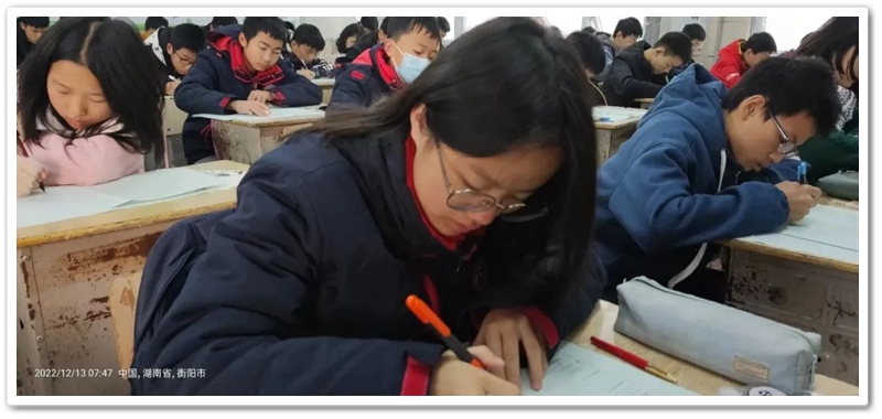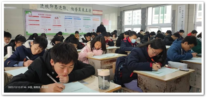 瞧,同学们正在认真审题,努力思考。有的奋笔疾书,有的冥思苦想,整个考场秩序井然。