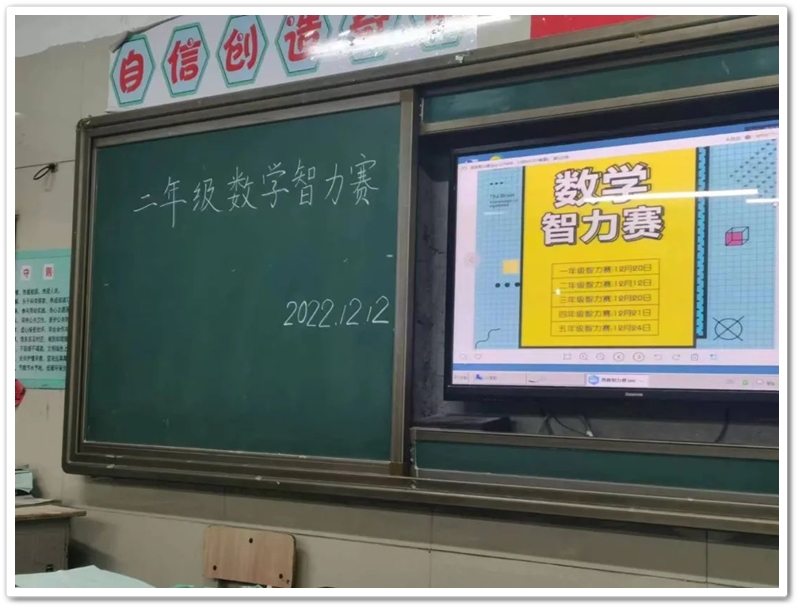 赛学科,赛风采。本着提高学生的分析问题和解决问题的能力、归纳推理的逻辑思维能力和探索实践的创新能力;进一步拓展学生的数学知识面,使学生在竞赛中体会到学习数学的成功喜悦,激发学生学习数学的兴趣为目的。二年级数学老师在出题时力争做到题目的有趣新颖、梯度明确,且能启发思考。小学部前方的宣传栏里也张贴了竞赛海报,孩子们早已磨刀擦槍,投入这场“战斗”。