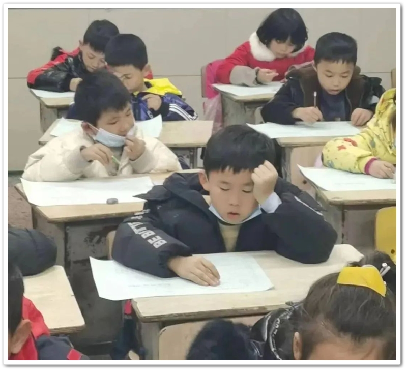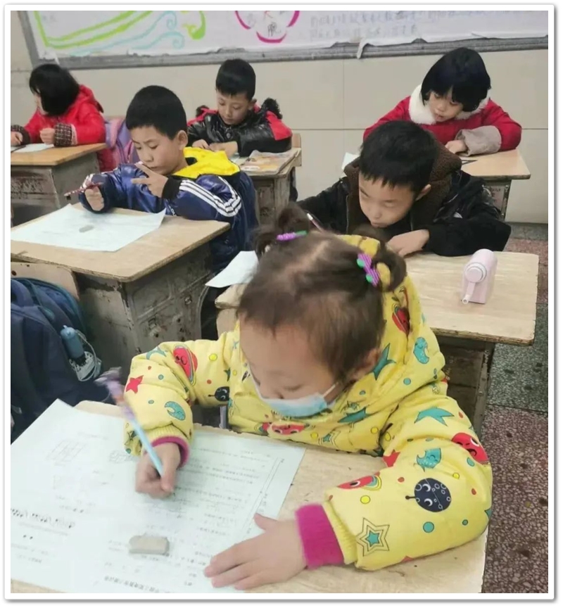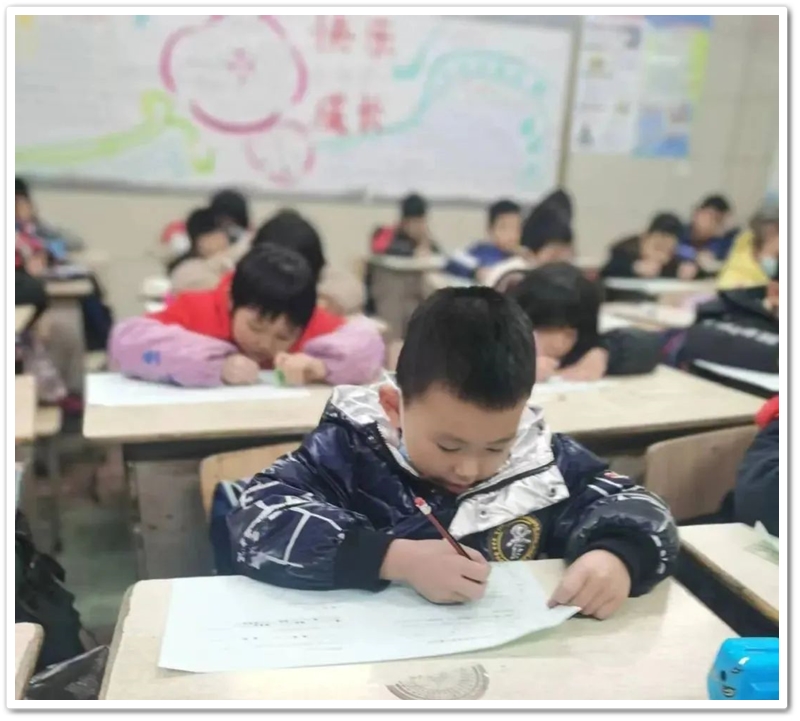 18:50分,二年级全体学生已准备就绪,铃声一响,孩子们迫不及待的拿起笔来。教室里一片“沙沙沙”的写字声,有的手托下巴、侧着脑袋、紧皱双眉在思考。