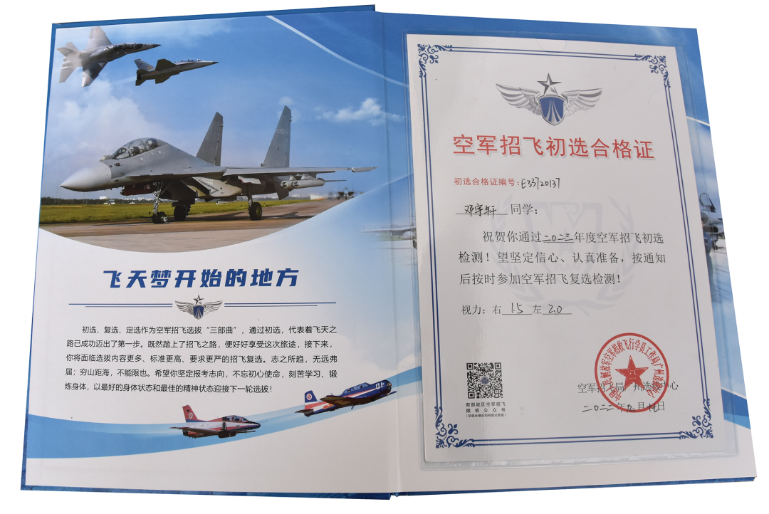 “恭喜同学们顺利通过空军招飞复选!大家的空军梦、蓝天梦指日可待!”