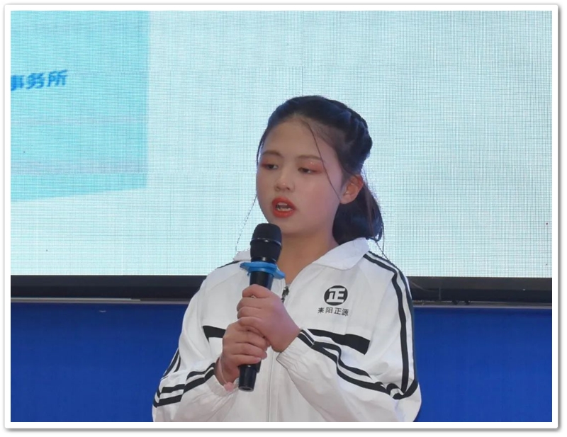 当我们遇见侵犯自身合法权益的事情该怎么办呢?351班的徐琴艺来告诉你。她推荐的是《给孩子们的第一本法律启蒙书》,与同学们分享法律对自己的影响和帮助,学法对树立正确的人生观与价值观所起到的积极作用。