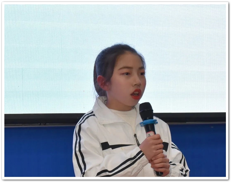 360班的陈可是个自信阳光的孩子,看,她分享的题目都这么有意思:原来你是这样的鹅。在她风趣幽默,略带调侃的讲述中我们知道了鹅肝的养成以及鹅肝对鹅的伤害,也明白了不管任何时候我们都要善待动物。就像评委谢冬情老师所说:“人要跟动物和谐相处,虽然有一些动物最终要进入人类的肚子,但在它们活着的时候就要尊重它们,让它们有尊严的活着。”