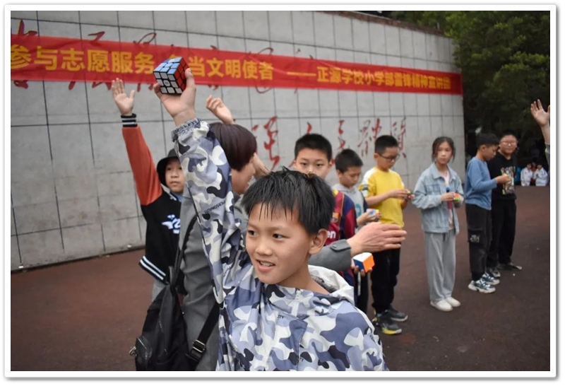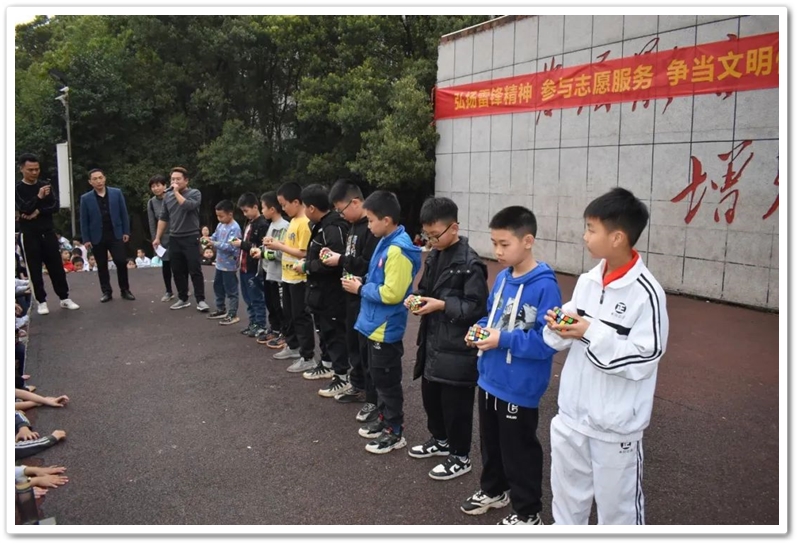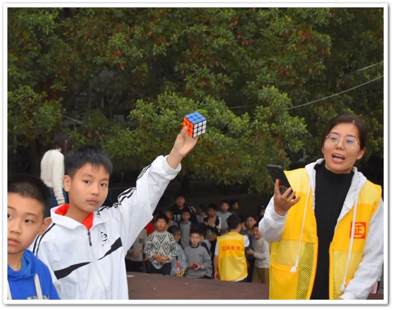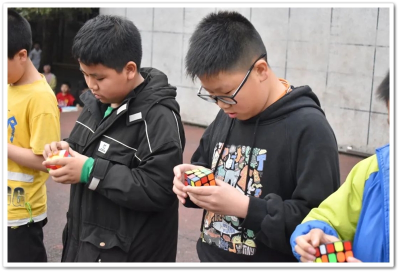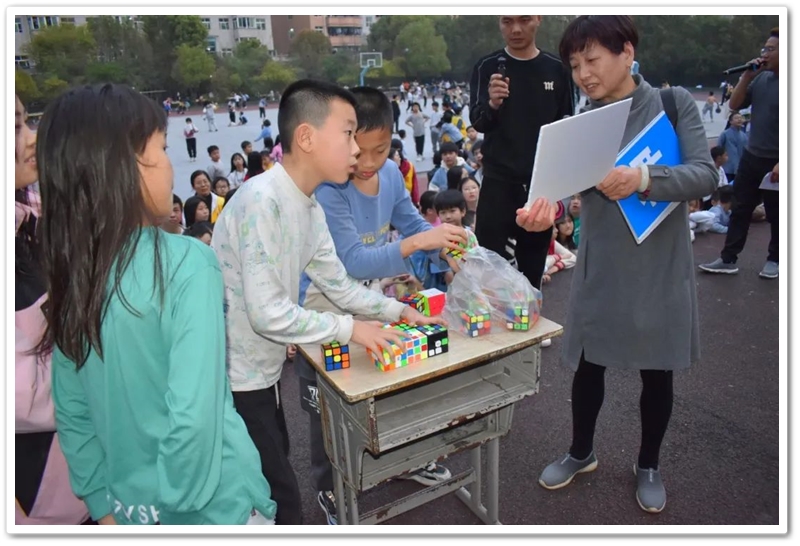 第一环节:魔方大比拼。魔方,又叫鲁比克方块,最早是由匈牙利布达佩斯建筑学院厄尔诺•鲁比克教授于1974年发明的机械益智玩具,在全世界智力游戏界中非常受欢迎,毋庸置疑,在正源学校也同样深受孩子们的喜爱。你看,那候场队伍的最前面,有很多同学拿着魔方在等待,在阳老师的指引下,第一批参加挑战的10位学生,满怀信心的登上舞台。首先,由两位老师将魔方打乱,孩子们拿着魔方端详,脑子里在想如何快速的复原。果不其然,在阳老师的一声令下,只见台上的10位同学快速地转动手中的魔方,小脸涨得通红,一个比一个快,台下的观众也非常给力,大声地呐喊,加油鼓劲!很快第一组的冠军产生了,一个微胖可爱的小男生,当主持人让他介绍一下自己时,他却只是微笑不语,这让主持人不得不打趣道:果然,高手都是神秘的!紧接着,第二组,第三组......一组比一组快,很快,魔方比拼总决赛就来了,首先由选手之间互相将魔方打乱,果然决赛的都是精英,那手速,那动作,真是太“炫”了!最后,在学生的欢呼中,来自五年级355班的邹世界同学以36秒02的成绩获得了本次魔方大比拼的冠军,喜悦之情表露无疑,这一“炫”,炫出他的童年精彩。